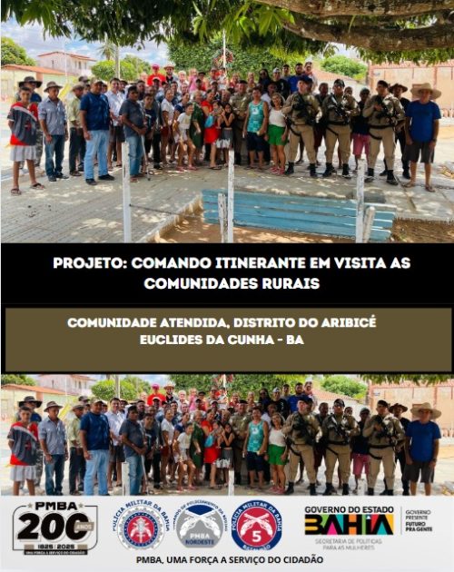 No último sábado (06), o Tenente-Coronel PM Roberto Sampaio, comandante do 5º Batalhão da Polícia Militar (5º BPM), esteve presente na Comunidade do Aribicé, importante distrito rural do município de Euclides da Cunha, em mais uma ação do Programa de Apoio Incondicional à Comunidade (PAI), parte do Projeto Comando Itinerante em Visita às Comunidades Rurais.