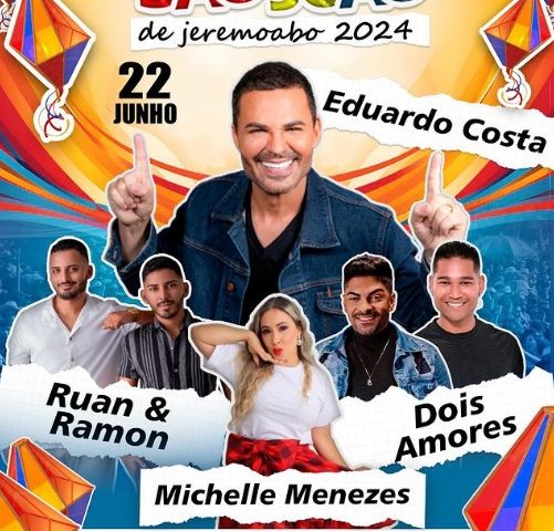 Eduardo Costa, Michelle Menezes e Dois amores são atrações confirmadas para o São João de Jeremoabo